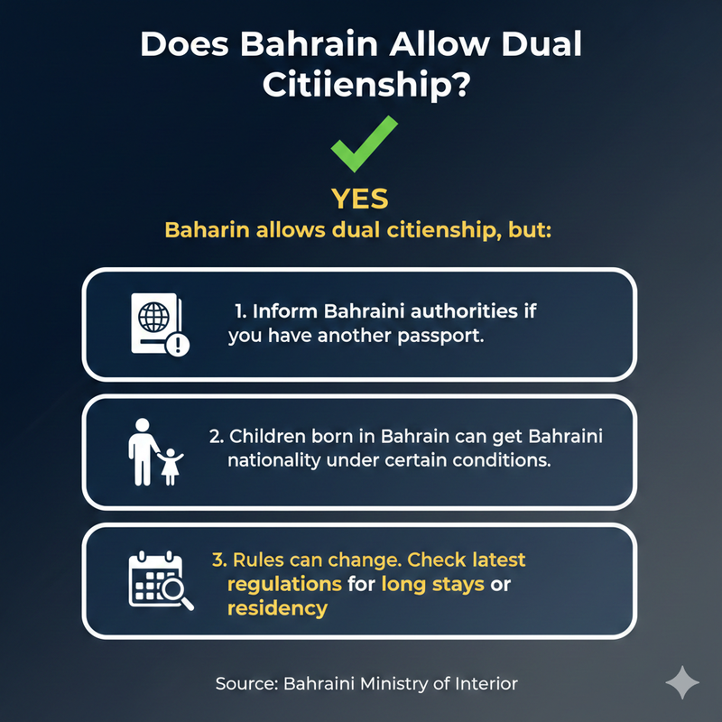 Yes — Bahrain allows dual citizenship, but there are a few things to keep in mind: